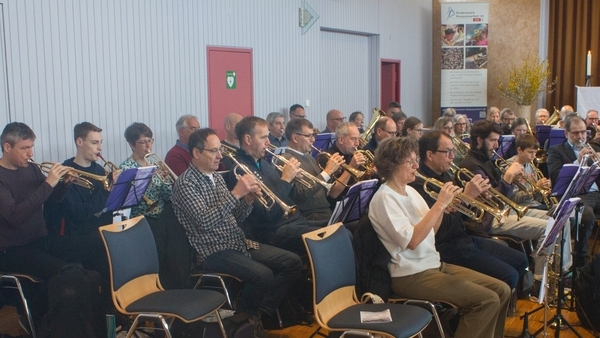Gut vorbereitet in den einzelnen Chören kamen die Bläserinnen und Bläser mit ihren Chorleitern nach Flacht.